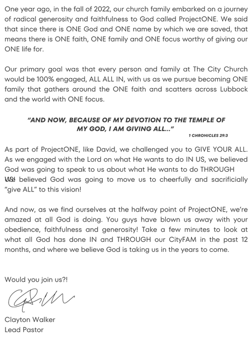 During the FIRST series, everyone will receive a physical copy of this commitment card. For those not able to make it in person, we’ve designed a digital commitment card so you can commit to ProjectONE. Follow the link below to find out more info and to turn in your digital commitment card!