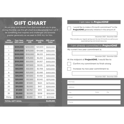 Remember this includes your regular giving, expanded generosity for ProjectONE, and gifts from any stored resources from December 2023 - December 2024.
